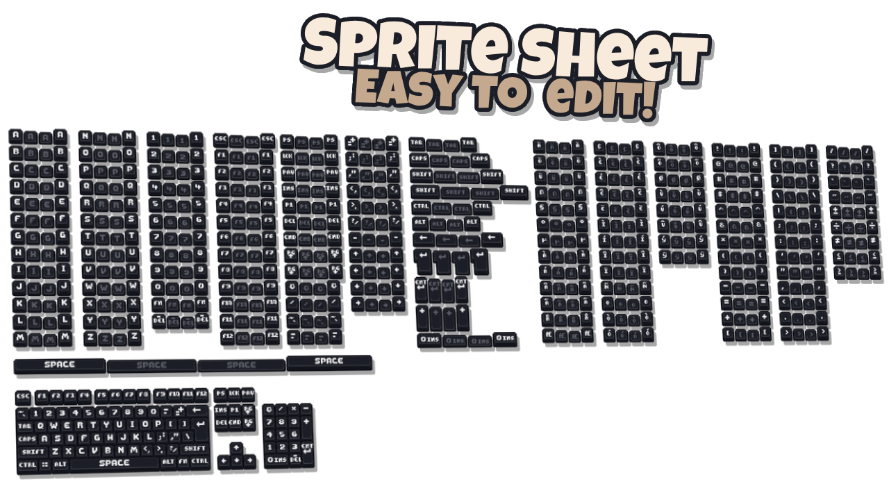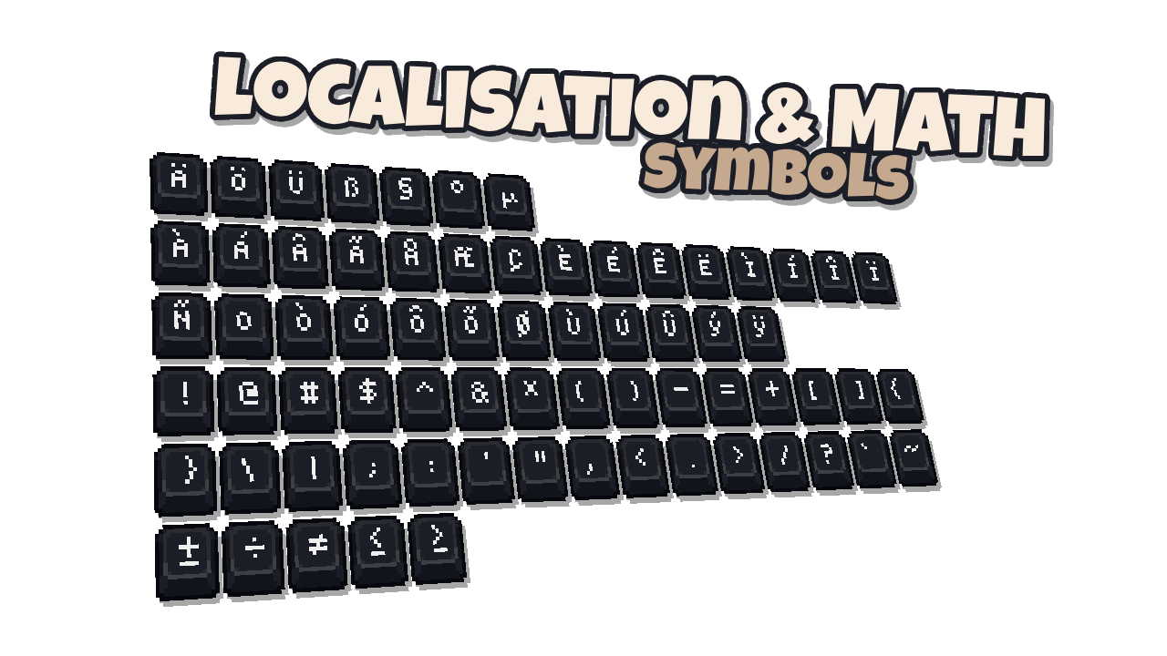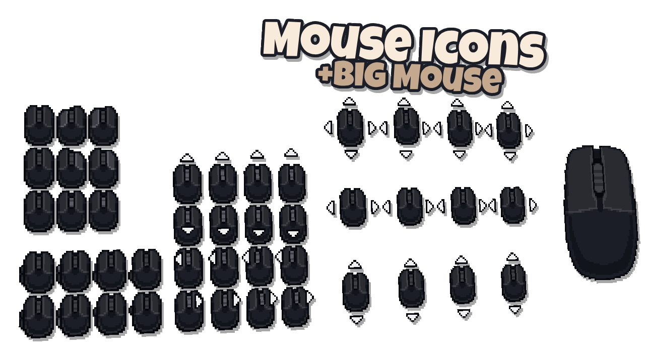 A complete pixel-art keyboard + mouse UI asset pack, perfect for menus, tutorials, or in-game prompts. Includes animated mouse inputs, all keys, symbols, accented letters, and Normal/Bold variants for global support. Clean, versatile, and ready to drop into your game.